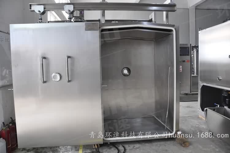 熟食品生产都必须经过熟食真空冷却机,贯通门式冷却机冷却的速度和质量对产品的品质和保质期有较大的影响。传统的冷却方式是自然冷却或者冷库冷却,传统冷却方式冷却时间长,内外温差大,而且易造成食品的”二次污染”和细菌超标。而真空快速冷却是一种快速蒸发冷却技术。它将刚出炉的熟食品放入密封的真空箱内,通过真空降压的方法,使食品水分在低压下快速蒸发降温的方式,从而达到冷却的目的。